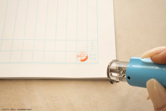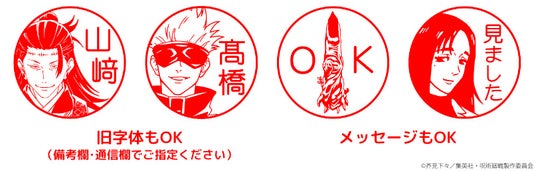 今回先行発売された「セルフインクタイプ」は、インク内蔵で朱肉いらず。使いやすく人気のキャップレスタイプです。オフィスでは付箋やメモに、ご家庭では手帳やお子さまの連絡帳、音読カードなど、日常のあらゆるシーンで『呪術廻戦』のキャラクターたちと一緒に過ごすことができます。なお、銀行登録にも使える「木彫りタイプ」「黒水牛タイプ」も順次展開予定です。