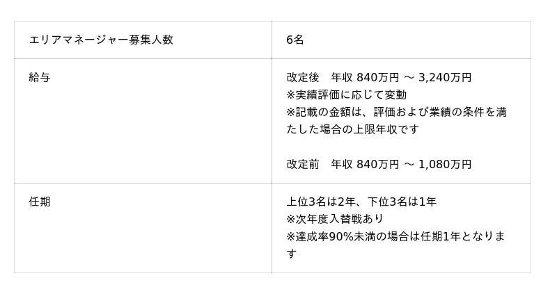 メガネ・サングラスの製造販売を手掛ける株式会社オンデーズ(本社:東京都品川区、代表取締役社長:海山丈司)は、店舗運営の最高職位である「エリアマネージャー」の最高年収を、従来の1,080万円から最大3,240万円※へと大幅に引き上げました。全社員の信任を得て立つリーダーに、アイウェア業界最高水準の正当な対価を約束することで、プロフェッショナルとしての責任ある挑戦を後押しします。エリアマネージャーは、全社員が投票を行う「エリアマネージャー解散総選挙」によって選出された社員を会社が任命し、5月1日(金)より新体制として着任、同報酬体系が適用されます。