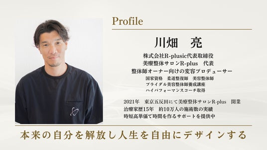 川畑 亮は、整体師として延べ10万人以上の施術経験を持ち、身体・思考・感情の変化を統合的にサポートしてきた。現在は整体・コーチング・音楽を融合させた独自のアプローチで、人が本来の力を取り戻すきっかけづくりを行っている。