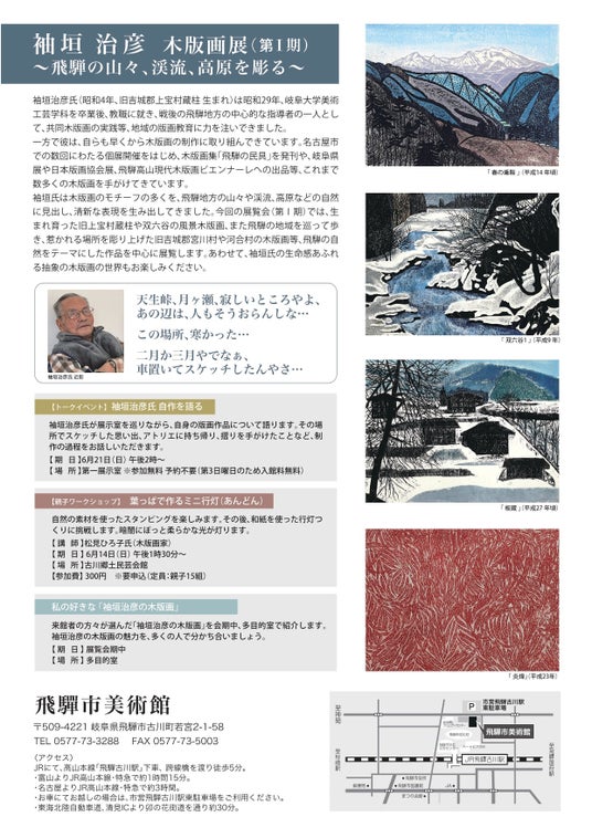 袖垣治彦 木版画展(第I期) ~飛騨の山々、渓流、高原を彫る~ チラシ