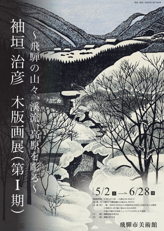 岐阜県飛騨市(市長:都竹淳也)の飛騨市美術館では、飛騨地方の豊かな自然をモチーフにした木版画家・袖垣治彦氏の作品展(第I期)を開催します。袖垣氏は1954(昭和29)年に岐阜大学美術工芸学科を卒業後教職に就き、戦後の飛騨地方の教育版画の中心的指導者として地域の版画教育に尽力。制作面でも精力的に活動し、岐阜県展や日本版画協会展での入選を重ねるなど幅広く評価されてきました。本展では、郷土の山々や渓流、高原、抽象的表現まで、飛騨の自然や風土、民俗を彫り続けた氏の多彩な木版画作品を一堂にご紹介します。
