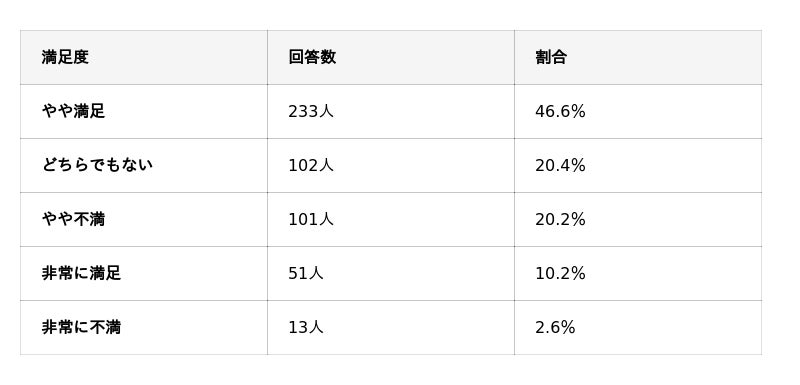 一方、「やや不満」20.2%と「非常に不満」2.6%で、合計22.8%が速度に不満を抱えています。「どちらでもない」20.4%を含めると、約4割が速度に積極的には満足していない状況です。