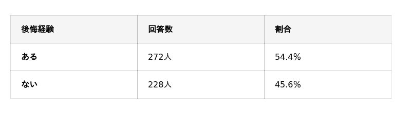 「速度の速さ」を重視してWiFiを選んだにもかかわらず、実際の速度に失望・後悔した経験があるかを聞いたところ、「ある」が54.4%で過半数を占めました。