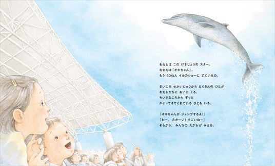 沖縄美ら海水族館で1975年から50年間、現役でショーに出演し続けたミナミバンドウイルカの「オキちゃん」。日本中、世界中の5000万人を超える観客に愛され、笑顔を届け続けてきたその生涯を描いたノンフィクション絵本です。
