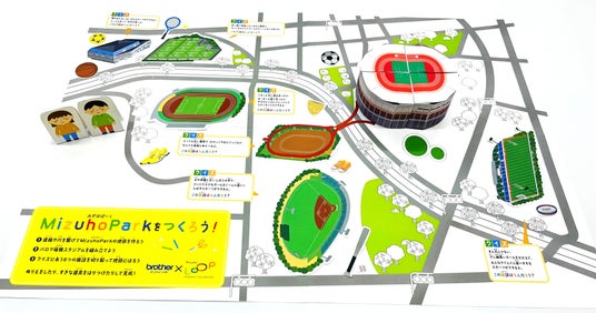ブラザー工業株式会社の国内販売子会社であるブラザー販売株式会社は、プリンターを活用して楽しめる無料ダウンロードコンテンツ配信サイト「プリふれ」で、パロマ瑞穂スタジアムの供用開始に合わせた新コンテンツ「Mizuho Parkをつくろう!」を4月22日に公開した。
