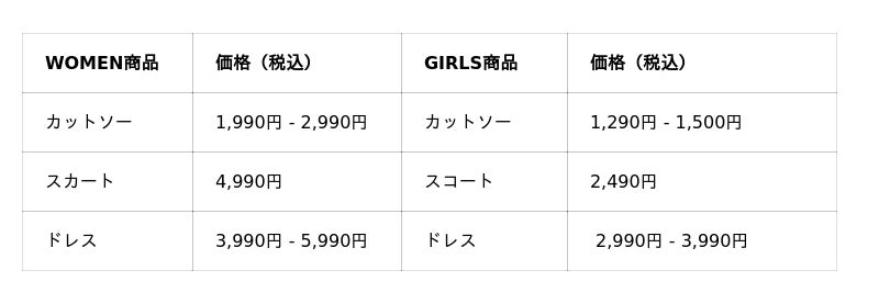 商品ラインナップ: ウィメンズ 8アイテム/ガールズ5アイテム