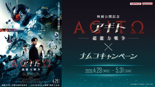 株式会社バンダイナムコエクスペリエンスは、仮面ライダー生誕55周年記念作『アギトー超能力戦争ー』の公開を記念して、ナムコでお得なサービスが受けられるキャンペーンを、2026年4月29日(水・祝)から全国のアミューズメント施設「ナムコ」で開催します。