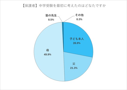 最初に「母」が中学受験をしようと考えた家庭が多いものの、約3割の家庭では、「子ども本人」がきっかけで、中学受験を検討したことが分かった。