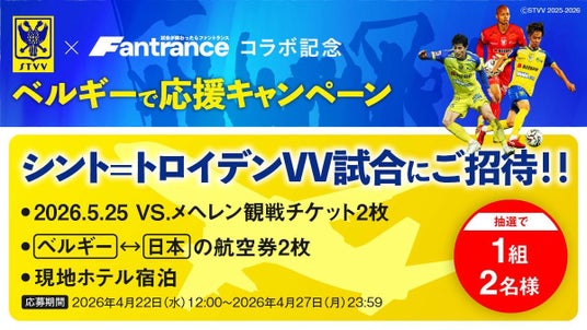 Back Dooor株式会社(本社:愛知県名古屋市、代表取締役:馬瓜エブリン、以下「Back Dooor」)は、運営するスポーツ特化ライブ配信プラットフォーム「Fantrance(ファントランス)」とベルギー・ジュピラー・プロ・リーグ1部所属のサッカークラブ、シント=トロイデンVV(以下「STVV」)とのコラボレーション開始を記念し、STVV公式Xアカウント(@STVV_JP)を主催とする「シント=トロイデンVV × Fantranceコラボ記念 ベルギーで応援キャンペーン」を2026年4月22日(水)より開催いたします。