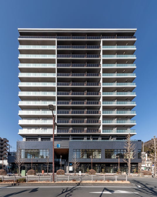 建築デザインは、青梅駅前の新しいランドマークとなるよう伝統工芸の「青梅縞(おうめじま)」をモチーフとした藍色のタイルを低層部に採用し、青梅の歴史ある街並みとの調和を取りつつ、街の様々な方向から見ても洗練された外観を目指しました。