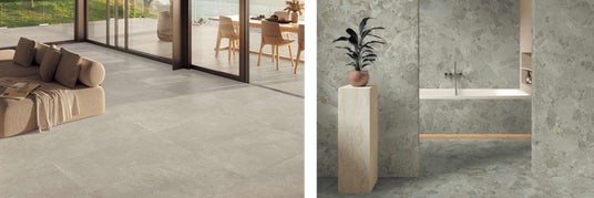 セラミックタイル、洗面ボウル、内装ルーバー、デザイン系塗り床材 など