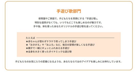 どのような作品が手遊び歌部門に寄せられるのか、とても楽しみです。」