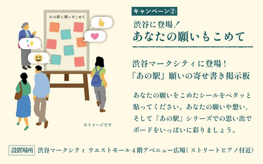 さらに、「あの駅」完結記念キャンペーンとして、本編4冊の裏表紙を組み合わせてできる二次元コードから特別なストーリーをお楽しみいただける体験の提供や、渋谷マークシティに皆様の願いや「あの駅」への想いで彩っていただける寄せ書き掲示板の設置などを行い、シリーズの完結を盛り上げ、沿線の魅力発見および移動需要の創出につなげて参ります。
