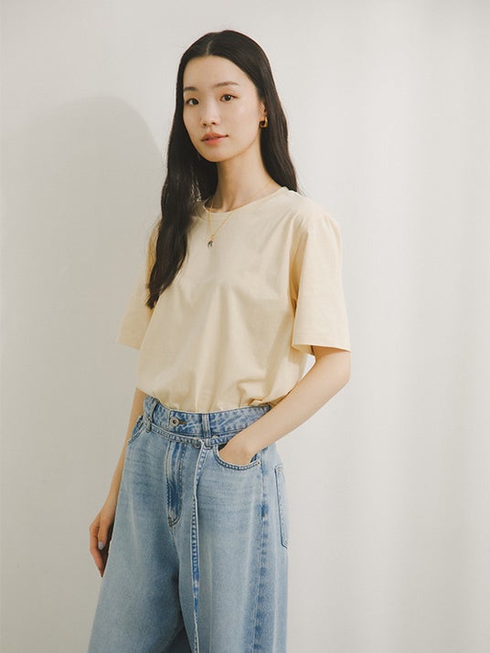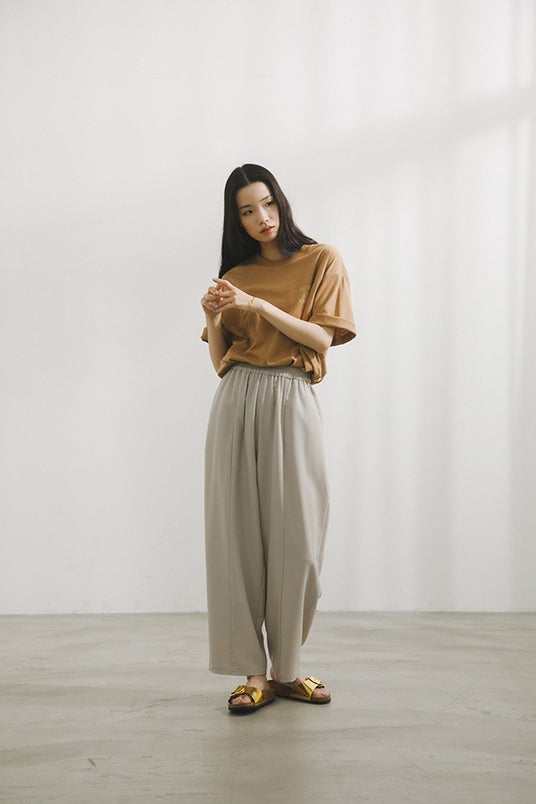 国内生地、国内縫製で高品質な超長綿のきめ細やかな素材を使用した、究極のシンプルTシャツ。洗濯を繰り返しても従来のカットソー素材と比べ毛羽立ちが少なく着用後も風合いを損ないにくい素材です。程よいコンパクトさで袖丈も短すぎず、大人っぽく着ていただけます。