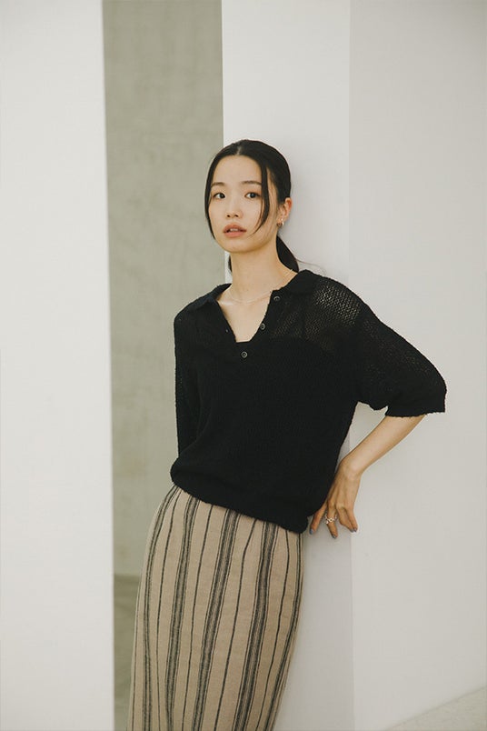 適度な肌見せやデニムとのバランスで生まれる抜け感、そして華奢なアクセサリーが引き立てる自然体なスタイル。忙しいキャリアの中でも心地よく、自分らしくいられる日常着を提案します。