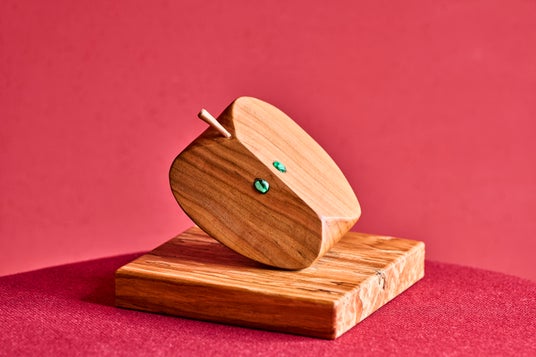 りんごの木は節目やこぶが多く、加工に非常に手間がかかるため、剪定された枝のほとんどは薪として使われる以外、廃棄されてしまいます。このオブジェは、そんな役目を終え、廃棄されるはずだったりんごの木に新たな命を吹き込んだ、一つひとつが手作りの一点物です。りんごの種に見立てた部分には、青森の伝統工芸品「津軽びいどろ」を使用。緑・桃・青の3色の煌めきが、見る角度によって繊細に変化します。温もりのある木材と透き通るガラスが美しく調和し、思わず覗き込みたくなるようなオブジェです。