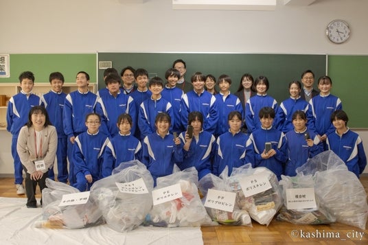 2025年9月~11月まで小中学校で集めたペットボトルキャップ、同校およびカスミ鹿嶋スタジアム店で回収したドレッシングキャップの総量は8.8kgとなり、成分調査の上、三菱ケミカル株式会社のリサイクルプラントへ投入しました。