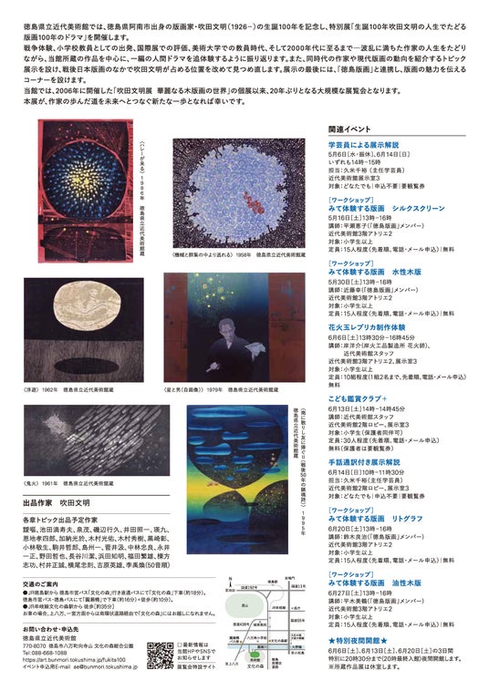 徳島県出身の版画家・吹田文明(ふきた ふみあき)の人生を、戦後日本版画史の歩みと共にたどります