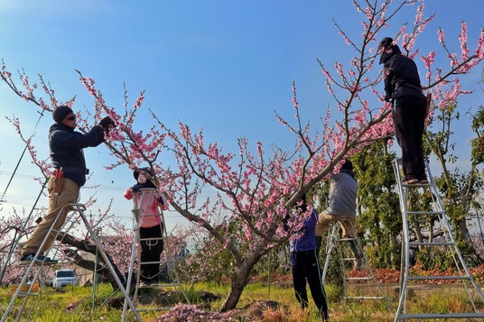 桃の名産地・和歌山県紀の川市にある株式会社八旗農園は桃を生産するとともに、桃の加工と商品化を行っています。これにより、農家の所得向上を図るとともに、加工業務等の新たな仕事を創出しています。