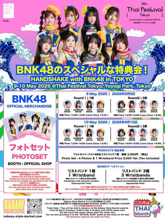 チケット購入はこちら:https://sabaay-style-market.com/products/bnk48-handshake-with-bnk48-in-tokyo