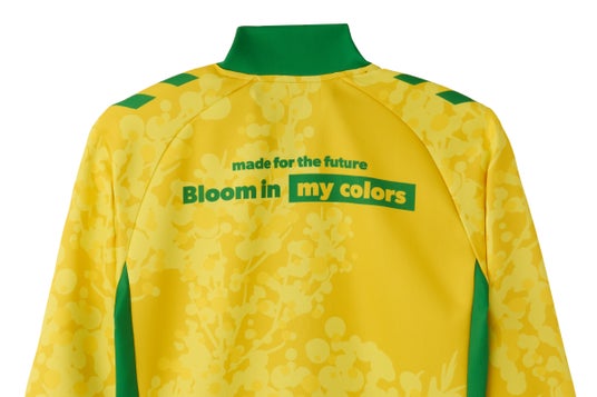 3月7日、HOMEゲームで今季初勝利を飾った柏レイソル戦で、ジェフユナイテッド市原・千葉の選手たちが着用したジャケットは、国際女性デーのシンボルのひとつにもなっているミモザを全面にデザイン。背中には取り組みのテーマである「Bloom in my colors.」(ワタシ色に咲こう)を配置し、それぞれの個性や多様性を認め合いながら、自分らしく花を咲かせようという想いを込めたアイテムです。