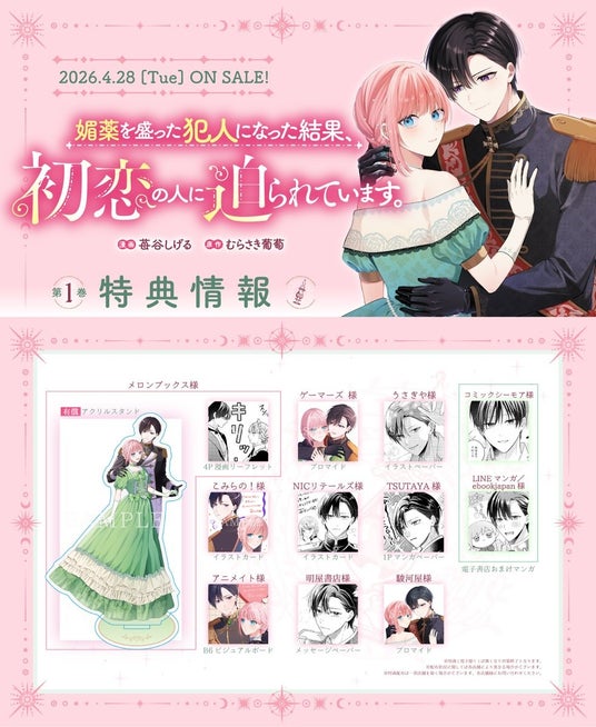 『媚薬を盛った犯人になった結果、初恋の人に迫られています。』1巻が発売!法人特典&法人限定特装版をご案内します!