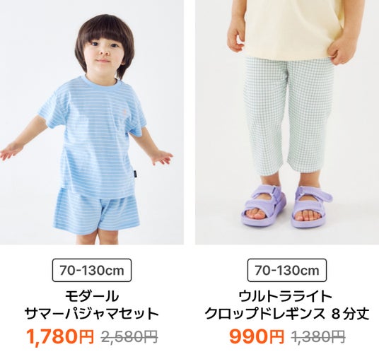 春夏のベビー服類をまとめ買いしやすいお値段でご用意。