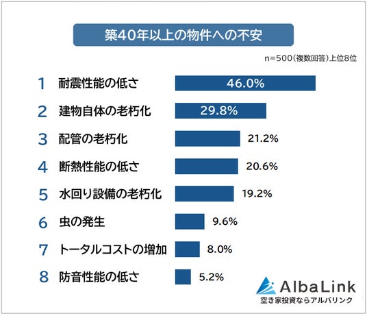今回、株式会社AlbaLink( https://albalink.co.jp/ )が運営する不動産投資の森( https://2do-3.com/ )は、全国の男女500人を対象に「築40年以上の物件」についてアンケート調査を実施しました。