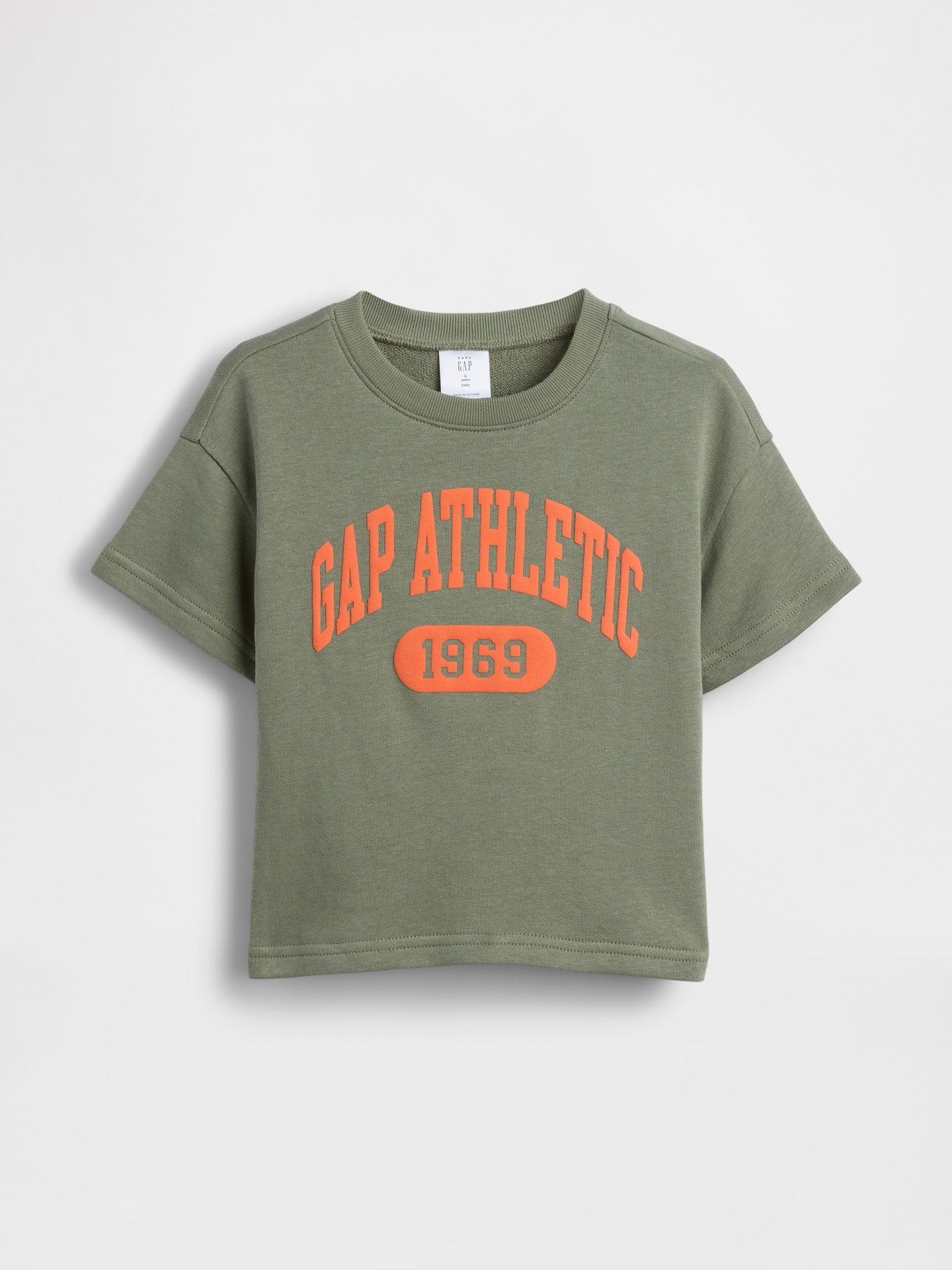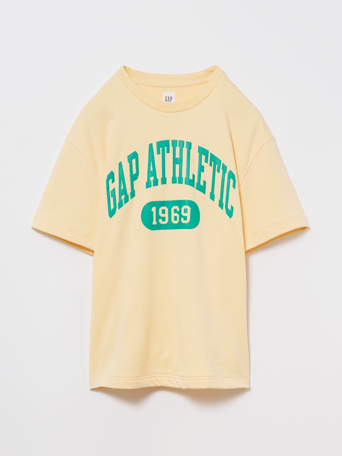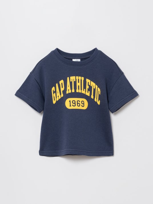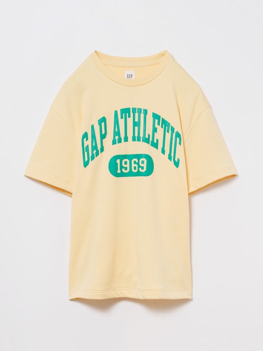 アスレチック ロゴスウェットシャツ: インパクトのあるロゴがデザインされた半袖スウェットシャツ