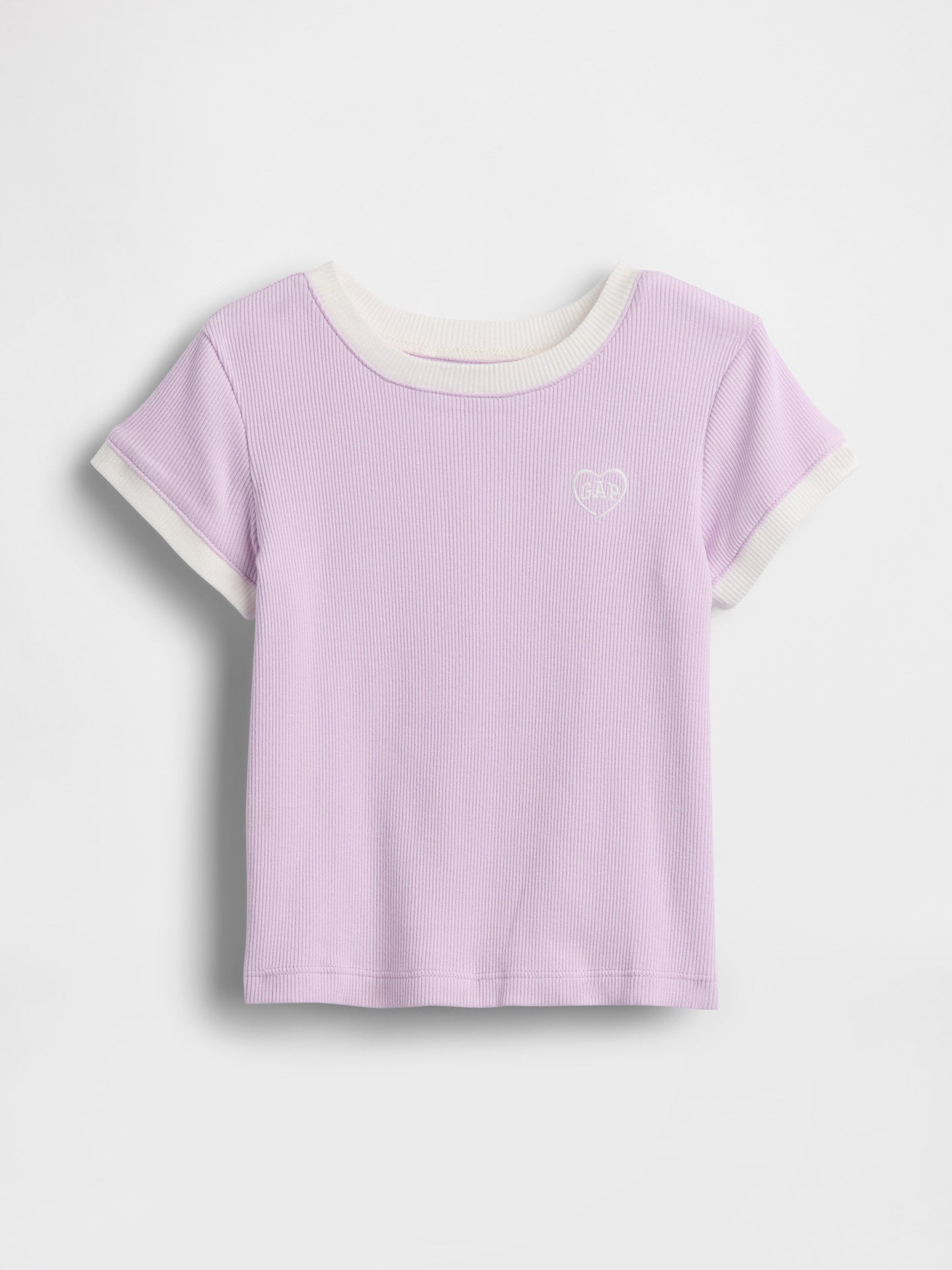 リンガーリブTシャツ: 胸元のワンポイントロゴがキュートなリブTシャツ