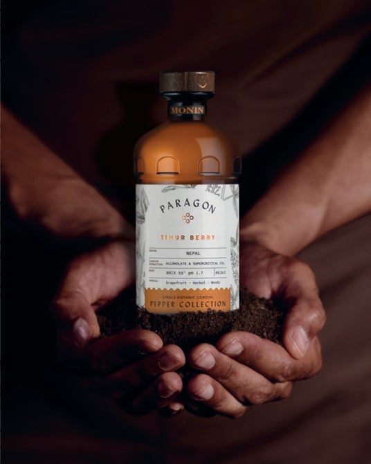 PARAGON(パラゴン・新ブランド)PARAGONは、世界各地の辺境地域で育つ希少な植物に焦点を当て、その複雑な香味を最大限に引き出したシングルボタニカル・コーディアルです。シリーズ第1章となる「ペッパー・コレクション」では、ルーベリー/ティムールベリー/ホワイトペンジャペッパーの3種をラインアップ。ペッパーが持つ風味を最大限に引き出すため、超臨界CO2抽出、インフュージョン、蒸留など複数の抽出技術を組み合わせて使用。さらに2種のacid(酸)をベースとし、クエン酸が爽やかな第一印象を、乳酸が長く豊かな余韻をもたらします。