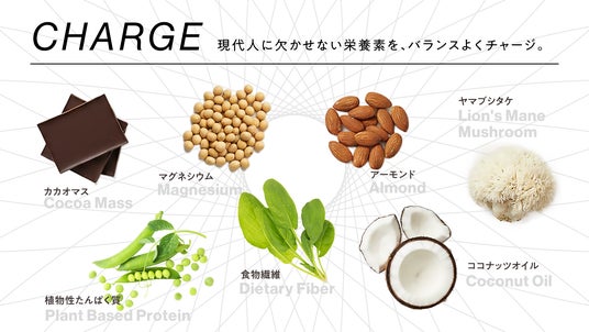 <CHARGE>現代人に欠かせない栄養素を、バランスよくチャージ。