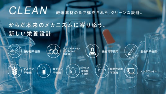 1.妥協なき素材へのこだわりで、糖質5g以下を実現身体と日々のパフォーマンスを第一に考えた理想的な商品設計のため、植物性食品のみを用い、白砂糖・小麦・乳製品・保存料を一切使わず、植物性由来の甘みのみでさらに糖質5g以下という厳しい条件のもと開発を進めました。