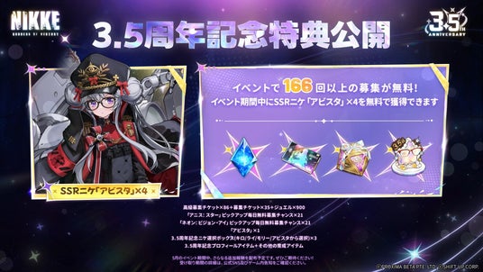 3.5TH ANNIVERSARYイベント期間中にゲームにログインすると、SSR「アビスタ」、高級募集チケット×10などの報酬を獲得できます。