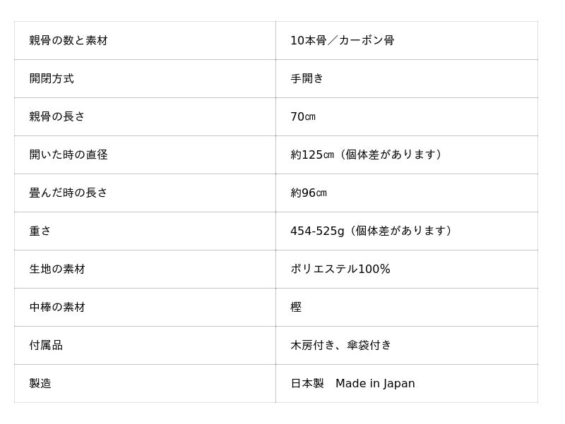 様々なサイズ展開が人気の、弊社の長年の定番「トラッド」シリーズに新たな商品が加わりました。「70cmの10本カーボン骨」と”大判軽量”の「トラッド-10-ロング-カーボン」です。