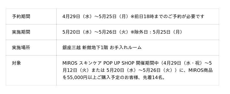 ■ 銀座三越 MIROS スキンケア POP UP SHOP 開催概要