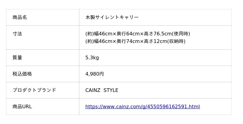 木材の質感を活かしたシンプルなデザインで、くらしになじみやすい木製台車です。ハンドルなどの配置荷台面はフルフラットで、手押し台車と平台車の2通りで使用できます。静音キャスターを採用し、折りたたむと厚さ約12cmで自立収納も可能です。木材と金属を中心に使用し、耐久性やメンテナンス性にも配慮しました。