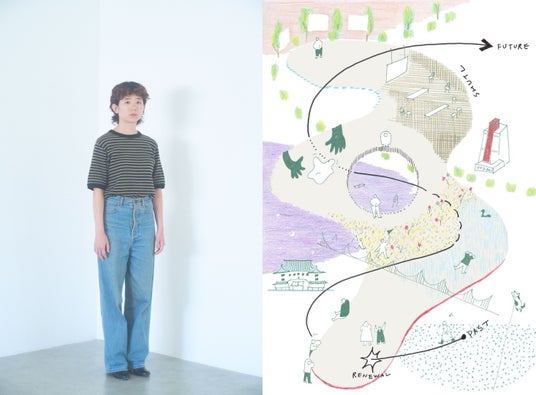 左:板坂留五(Photo:Nanako Ono) 右:板坂 留五(RUI Architects)による本プロジェクトのコンセプトスケッチ