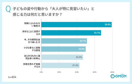 ☑ 子どもから見習いたい力の1位は「常識にとらわれない発想力」(39.6%)
