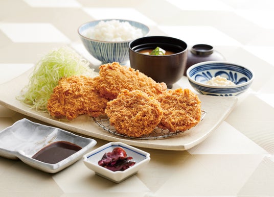 肉厚で脂の乗った“旬あじ(ときあじ)”に、こだわりの生パン粉をまぶし、絶妙な火加減で仕上げた「肉厚アジフライ」は、外はサクサク、中は肉厚でふっくら。あじの旨味が口いっぱいに広がります。また、アジフライに、ヒレかつやメンチかつ、海老フライを組み合わせた定食もご用意!自慢の揚げ物を一度に味わえるお得な定食です。ぜひご賞味ください。なお、本メニューはテイクアウト・デリバリーでも承っております。