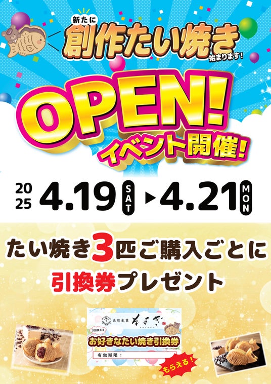更に、今後そよぎのたい焼きはかわいいミニたい焼きやたい焼きパフェなどの他にも月ごとに入れ替わる新しい味のたい焼きが登場するなど進化し続けていく予定です。常に進化の止まらない『そよぎのたい焼き』に是非注目していってください。