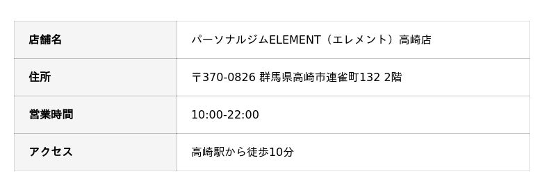 月額39,800円で通い放題のパーソナルジム 「ELEMENT(エレメント)」を都内にて展開する株式会社MIGRIDS(東京都渋谷区、代表取締役:鈴木太郎)は、2026年4月15日に通い放題のパーソナルジム「ELEMENT 高崎店」(住所:〒370-0826 群馬県高崎市連雀町132 2階)をグランドオープン致します。