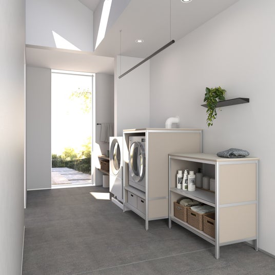 すっきり、シンプルなスタイルでランドリー空間を美しく、やさしく。乾太くんを中心に、デザイン性と動線設計を兼ね備えたランドリー空間を実現します。