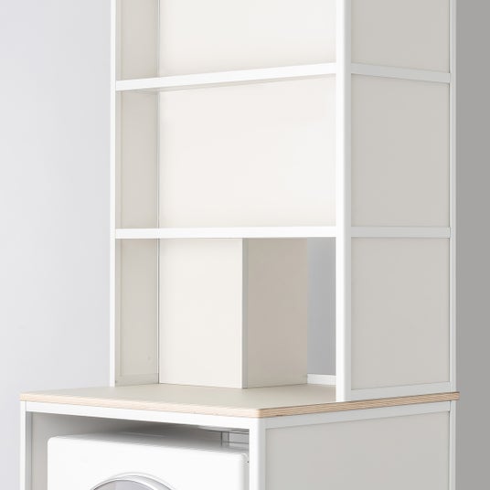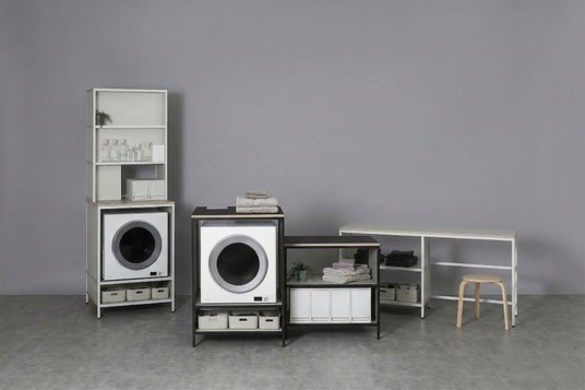 本商品は、ガス衣類乾燥機「乾太くん」を中心に、作業カウンターや収納を自由に構築できるアルミフレームシステムです。