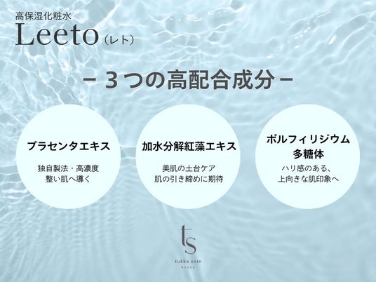 『Leeto』は、保湿の先にある「健やかな肌土台」を作るため、厳選された3つの成分を高濃度で配合しています。