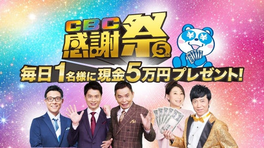 CBCテレビでは、4月27日(月)から「CBC感謝祭」と題したキャンペーンを実施します。キャンペーン期間中、対象番組放送中にdボタンを押して表示された番号に電話をかけた方の中から抽選で1名さまに現金5万円をプレゼントします!期間中、毎日どなたかに5万円をプレゼントするキャンペーンです。
