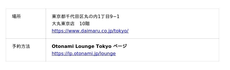 Otonami Lounge Tokyo(大丸東京店):https://lp.otonami.jp/lounge