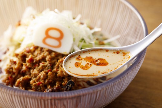 こうした季節背景に合わせ、濃厚なゴマ香る担々スープに、まろやかなコクと香ばしさのあるアーモンドミルク、酸味と甘みがあるタレを合わせたひんやり冷たいスープと、麻辣の刺激ある味わいを組み合わせました。また、暑さが増してくるこの時期にも8番らーめんでしっかり野菜を摂って欲しいという想いから、キャベツや人参など「野菜らーめん」と同じ野菜を使用し、酸味ですっきり味付け。暑さの中でもさっぱりと食べやすく満足感のある一杯に仕上げました。