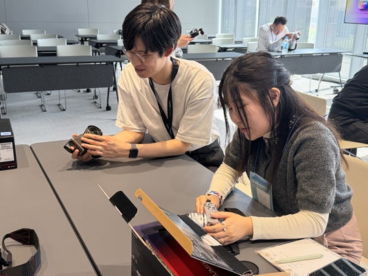 門真市と門真市に開発・製造拠点を有し、「LUMIX」のデジタル一眼カメラ等を手がけるパナソニック エンターテインメント&コミュニケーション株式会社 イメージングソリューション事業部は、令和8年(2026年)3月19日に、シティプロモーション推進に関する事業連携協定を締結しました。協定の一環として寄贈いただいたLUMIXのミラーレス一眼カメラは、魅力発信チームの取材に活用し、市民が地域の魅力を発信するなど、創造的な表現活動を通じた市全体の活性化を図ります。LUMIXの機能や特色を理解し、躍動感のある街の魅力を発信できるよう、パナソニック社員によるカメラ操作研修を実施いただきました。