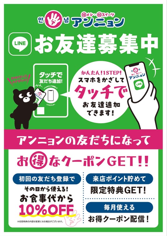 「アンニョン公式LINE」でお得なサービスお届けいたします